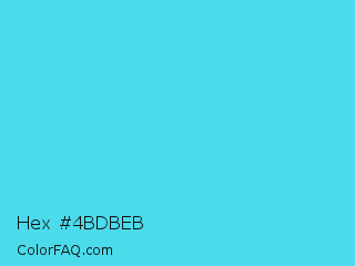 Hex #4bdbeb Color is a light cyan color and the nearest color is Turquoise #40e0d0. Hex code #4bdbeb and RGB value is rgb(75,219,235). In RGB color space, this color is composed of 29% red, 86% green, 92% blue, In CMYK color space, this color is composed of 68% cyan, 7% magenta, 0% yellow , 8% black , In HSL color space, this color has a hue angle of 186° , 80% saturation and 61% lightness.