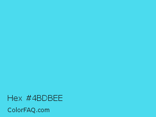 Hex #4bdbee Color is a light cyan color and the nearest color is Turquoise #40e0d0. Hex code #4bdbee and RGB value is rgb(75,219,238). In RGB color space, this color is composed of 29% red, 86% green, 93% blue, In CMYK color space, this color is composed of 68% cyan, 8% magenta, 0% yellow , 7% black , In HSL color space, this color has a hue angle of 187° , 83% saturation and 61% lightness.