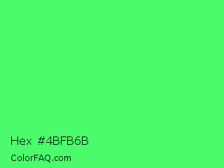 Hex #4bfb6b Color is a light green color and the nearest color is Screamin Green #66ff66. Hex code #4bfb6b and RGB value is rgb(75,251,107). In RGB color space, this color is composed of 29% red, 98% green, 42% blue, In CMYK color space, this color is composed of 70% cyan, 0% magenta, 57% yellow , 2% black , In HSL color space, this color has a hue angle of 131° , 96% saturation and 64% lightness.