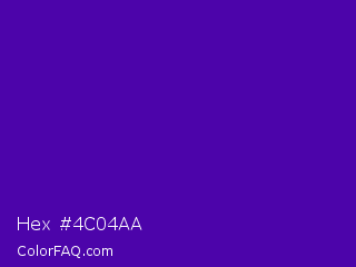 Hex #4c04aa Color is a normal violet color and the nearest color is Purple #660099. Hex code #4c04aa and RGB value is rgb(76,4,170). In RGB color space, this color is composed of 30% red, 2% green, 67% blue, In CMYK color space, this color is composed of 55% cyan, 98% magenta, 0% yellow , 33% black , In HSL color space, this color has a hue angle of 266° , 95% saturation and 34% lightness.