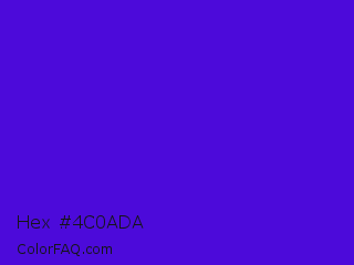 Hex #4c0ada Color is a normal indigo color and the nearest color is Interdimensional Blue #360ccc. Hex code #4c0ada and RGB value is rgb(76,10,218). In RGB color space, this color is composed of 30% red, 4% green, 85% blue, In CMYK color space, this color is composed of 65% cyan, 95% magenta, 0% yellow , 15% black , In HSL color space, this color has a hue angle of 259° , 91% saturation and 45% lightness.