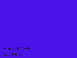 Hex #4c13e8 Color is a normal indigo color and the nearest color is Han Purple #5218fa. Hex code #4c13e8 and RGB value is rgb(76,19,232). In RGB color space, this color is composed of 30% red, 7% green, 91% blue, In CMYK color space, this color is composed of 67% cyan, 92% magenta, 0% yellow , 9% black , In HSL color space, this color has a hue angle of 256° , 85% saturation and 49% lightness.
