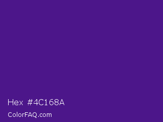 Hex #4c168a Color is a normal violet color and the nearest color is KSU Purple #512888. Hex code #4c168a and RGB value is rgb(76,22,138). In RGB color space, this color is composed of 30% red, 9% green, 54% blue, In CMYK color space, this color is composed of 45% cyan, 84% magenta, 0% yellow , 46% black , In HSL color space, this color has a hue angle of 268° , 73% saturation and 31% lightness.