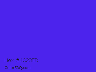 Hex #4c23ed Color is a normal indigo color and the nearest color is Han Purple #5218fa. Hex code #4c23ed and RGB value is rgb(76,35,237). In RGB color space, this color is composed of 30% red, 14% green, 93% blue, In CMYK color space, this color is composed of 68% cyan, 85% magenta, 0% yellow , 7% black , In HSL color space, this color has a hue angle of 252° , 85% saturation and 53% lightness.