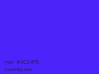 Hex #4c24fb Color is a normal indigo color and the nearest color is Han Purple #5218fa. Hex code #4c24fb and RGB value is rgb(76,36,251). In RGB color space, this color is composed of 30% red, 14% green, 98% blue, In CMYK color space, this color is composed of 70% cyan, 86% magenta, 0% yellow , 2% black , In HSL color space, this color has a hue angle of 251° , 96% saturation and 56% lightness.