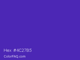 Hex #4c27b5 Color is a normal indigo color and the nearest color is Ocean Blue #4f42b5. Hex code #4c27b5 and RGB value is rgb(76,39,181). In RGB color space, this color is composed of 30% red, 15% green, 71% blue, In CMYK color space, this color is composed of 58% cyan, 78% magenta, 0% yellow , 29% black , In HSL color space, this color has a hue angle of 256° , 65% saturation and 43% lightness.