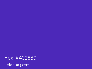 Hex #4c28b9 Color is a normal indigo color and the nearest color is Ocean Blue #4f42b5. Hex code #4c28b9 and RGB value is rgb(76,40,185). In RGB color space, this color is composed of 30% red, 16% green, 73% blue, In CMYK color space, this color is composed of 59% cyan, 78% magenta, 0% yellow , 27% black , In HSL color space, this color has a hue angle of 255° , 64% saturation and 44% lightness.