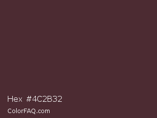 Hex #4c2b32 Color is a dark red color and the nearest color is Livid Brown #4d282e. Hex code #4c2b32 and RGB value is rgb(76,43,50). In RGB color space, this color is composed of 30% red, 17% green, 20% blue, In CMYK color space, this color is composed of 0% cyan, 43% magenta, 34% yellow , 70% black , In HSL color space, this color has a hue angle of 347° , 28% saturation and 23% lightness.
