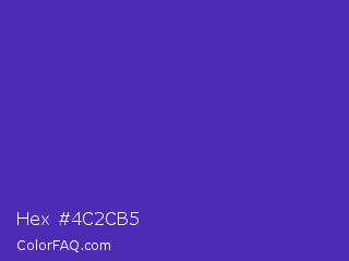 Hex #4c2cb5 Color is a normal indigo color and the nearest color is Ocean Blue #4f42b5. Hex code #4c2cb5 and RGB value is rgb(76,44,181). In RGB color space, this color is composed of 30% red, 17% green, 71% blue, In CMYK color space, this color is composed of 58% cyan, 76% magenta, 0% yellow , 29% black , In HSL color space, this color has a hue angle of 254° , 61% saturation and 44% lightness.