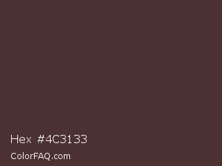Hex #4c3133 Color is a dark red color and the nearest color is Woody Brown #483131. Hex code #4c3133 and RGB value is rgb(76,49,51). In RGB color space, this color is composed of 30% red, 19% green, 20% blue, In CMYK color space, this color is composed of 0% cyan, 36% magenta, 33% yellow , 70% black , In HSL color space, this color has a hue angle of 356° , 22% saturation and 25% lightness.