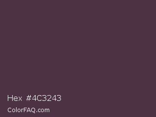 Hex #4c3243 Color is a dark magenta color and the nearest color is Matterhorn #4e3b41. Hex code #4c3243 and RGB value is rgb(76,50,67). In RGB color space, this color is composed of 30% red, 20% green, 26% blue, In CMYK color space, this color is composed of 0% cyan, 34% magenta, 12% yellow , 70% black , In HSL color space, this color has a hue angle of 321° , 21% saturation and 25% lightness.