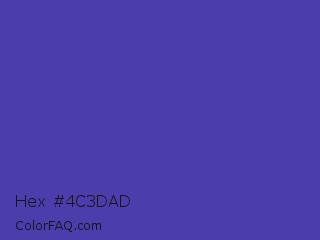 Hex #4c3dad Color is a normal indigo color and the nearest color is Ocean Blue #4f42b5. Hex code #4c3dad and RGB value is rgb(76,61,173). In RGB color space, this color is composed of 30% red, 24% green, 68% blue, In CMYK color space, this color is composed of 56% cyan, 65% magenta, 0% yellow , 32% black , In HSL color space, this color has a hue angle of 248° , 48% saturation and 46% lightness.