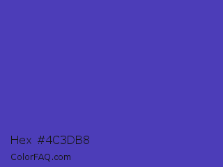 Hex #4c3db8 Color is a normal indigo color and the nearest color is Ocean Blue #4f42b5. Hex code #4c3db8 and RGB value is rgb(76,61,184). In RGB color space, this color is composed of 30% red, 24% green, 72% blue, In CMYK color space, this color is composed of 59% cyan, 67% magenta, 0% yellow , 28% black , In HSL color space, this color has a hue angle of 247° , 50% saturation and 48% lightness.