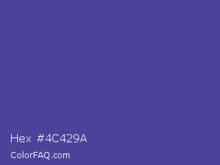 Hex #4c429a Color is a normal indigo color and the nearest color is Gigas #523c94. Hex code #4c429a and RGB value is rgb(76,66,154). In RGB color space, this color is composed of 30% red, 26% green, 60% blue, In CMYK color space, this color is composed of 51% cyan, 57% magenta, 0% yellow , 40% black , In HSL color space, this color has a hue angle of 247° , 40% saturation and 43% lightness.
