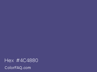 Hex #4c4880 Color is a normal indigo color and the nearest color is Purple Navy #4e5180. Hex code #4c4880 and RGB value is rgb(76,72,128). In RGB color space, this color is composed of 30% red, 28% green, 50% blue, In CMYK color space, this color is composed of 41% cyan, 44% magenta, 0% yellow , 50% black , In HSL color space, this color has a hue angle of 244° , 28% saturation and 39% lightness.