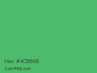 Hex #4cbb6b Color is a normal green color and the nearest color is Emerald #50c878. Hex code #4cbb6b and RGB value is rgb(76,187,107). In RGB color space, this color is composed of 30% red, 73% green, 42% blue, In CMYK color space, this color is composed of 59% cyan, 0% magenta, 43% yellow , 27% black , In HSL color space, this color has a hue angle of 137° , 45% saturation and 52% lightness.