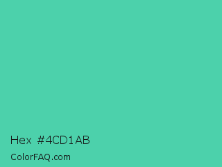 Hex #4cd1ab Color is a normal green color and the nearest color is Eucalyptus #44d7a8. Hex code #4cd1ab and RGB value is rgb(76,209,171). In RGB color space, this color is composed of 30% red, 82% green, 67% blue, In CMYK color space, this color is composed of 64% cyan, 0% magenta, 18% yellow , 18% black , In HSL color space, this color has a hue angle of 163° , 59% saturation and 56% lightness.
