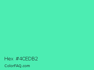 Hex #4cedb2 Color is a light green color and the nearest color is Eucalyptus #44d7a8. Hex code #4cedb2 and RGB value is rgb(76,237,178). In RGB color space, this color is composed of 30% red, 93% green, 70% blue, In CMYK color space, this color is composed of 68% cyan, 0% magenta, 25% yellow , 7% black , In HSL color space, this color has a hue angle of 158° , 82% saturation and 61% lightness.