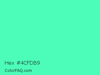 Hex #4cfdb9 Color is a light green color and the nearest color is Turquoise #40e0d0. Hex code #4cfdb9 and RGB value is rgb(76,253,185). In RGB color space, this color is composed of 30% red, 99% green, 73% blue, In CMYK color space, this color is composed of 70% cyan, 0% magenta, 27% yellow , 1% black , In HSL color space, this color has a hue angle of 157° , 98% saturation and 65% lightness.