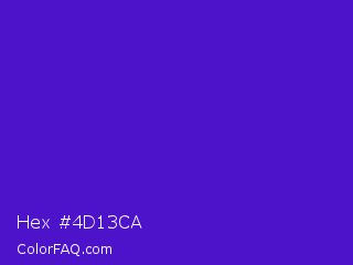 Hex #4d13ca Color is a normal indigo color and the nearest color is Interdimensional Blue #360ccc. Hex code #4d13ca and RGB value is rgb(77,19,202). In RGB color space, this color is composed of 30% red, 7% green, 79% blue, In CMYK color space, this color is composed of 62% cyan, 91% magenta, 0% yellow , 21% black , In HSL color space, this color has a hue angle of 259° , 83% saturation and 43% lightness.