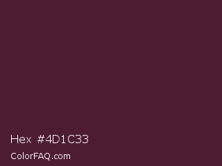 Hex #4d1c33 Color is a very dark rose color and the nearest color is Wine Berry #591d35. Hex code #4d1c33 and RGB value is rgb(77,28,51). In RGB color space, this color is composed of 30% red, 11% green, 20% blue, In CMYK color space, this color is composed of 0% cyan, 64% magenta, 34% yellow , 70% black , In HSL color space, this color has a hue angle of 332° , 47% saturation and 21% lightness.