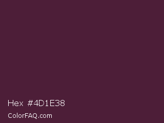 Hex #4d1e38 Color is a very dark magenta color and the nearest color is Wine Berry #591d35. Hex code #4d1e38 and RGB value is rgb(77,30,56). In RGB color space, this color is composed of 30% red, 12% green, 22% blue, In CMYK color space, this color is composed of 0% cyan, 61% magenta, 27% yellow , 70% black , In HSL color space, this color has a hue angle of 327° , 44% saturation and 21% lightness.