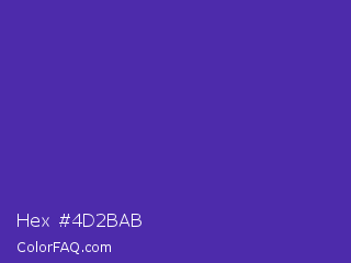 Hex #4d2bab Color is a normal indigo color and the nearest color is Daisy Bush #4f2398. Hex code #4d2bab and RGB value is rgb(77,43,171). In RGB color space, this color is composed of 30% red, 17% green, 67% blue, In CMYK color space, this color is composed of 55% cyan, 75% magenta, 0% yellow , 33% black , In HSL color space, this color has a hue angle of 256° , 60% saturation and 42% lightness.