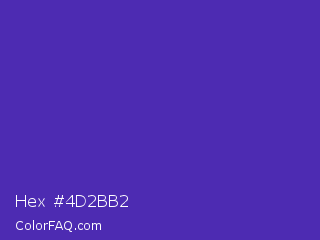 Hex #4d2bb2 Color is a normal indigo color and the nearest color is Ocean Blue #4f42b5. Hex code #4d2bb2 and RGB value is rgb(77,43,178). In RGB color space, this color is composed of 30% red, 17% green, 70% blue, In CMYK color space, this color is composed of 57% cyan, 76% magenta, 0% yellow , 30% black , In HSL color space, this color has a hue angle of 255° , 61% saturation and 43% lightness.