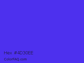 Hex #4d30ee Color is a normal indigo color and the nearest color is Han Purple #5218fa. Hex code #4d30ee and RGB value is rgb(77,48,238). In RGB color space, this color is composed of 30% red, 19% green, 93% blue, In CMYK color space, this color is composed of 68% cyan, 80% magenta, 0% yellow , 7% black , In HSL color space, this color has a hue angle of 249° , 85% saturation and 56% lightness.