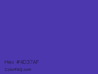 Hex #4d37af Color is a normal indigo color and the nearest color is Ocean Blue #4f42b5. Hex code #4d37af and RGB value is rgb(77,55,175). In RGB color space, this color is composed of 30% red, 22% green, 69% blue, In CMYK color space, this color is composed of 56% cyan, 69% magenta, 0% yellow , 31% black , In HSL color space, this color has a hue angle of 251° , 52% saturation and 45% lightness.