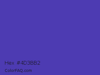 Hex #4d3bb2 Color is a normal indigo color and the nearest color is Ocean Blue #4f42b5. Hex code #4d3bb2 and RGB value is rgb(77,59,178). In RGB color space, this color is composed of 30% red, 23% green, 70% blue, In CMYK color space, this color is composed of 57% cyan, 67% magenta, 0% yellow , 30% black , In HSL color space, this color has a hue angle of 249° , 50% saturation and 46% lightness.