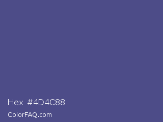 Hex #4d4c88 Color is a normal indigo color and the nearest color is Purple Navy #4e5180. Hex code #4d4c88 and RGB value is rgb(77,76,136). In RGB color space, this color is composed of 30% red, 30% green, 53% blue, In CMYK color space, this color is composed of 43% cyan, 44% magenta, 0% yellow , 47% black , In HSL color space, this color has a hue angle of 241° , 28% saturation and 42% lightness.
