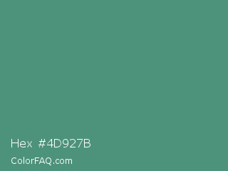 Hex #4d927b Color is a normal green color and the nearest color is Wintergreen Dream #56887d. Hex code #4d927b and RGB value is rgb(77,146,123). In RGB color space, this color is composed of 30% red, 57% green, 48% blue, In CMYK color space, this color is composed of 47% cyan, 0% magenta, 16% yellow , 43% black , In HSL color space, this color has a hue angle of 160° , 31% saturation and 44% lightness.
