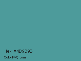 Hex #4d9b9b Color is a normal cyan color and the nearest color is Breaker Bay #5da19f. Hex code #4d9b9b and RGB value is rgb(77,155,155). In RGB color space, this color is composed of 30% red, 61% green, 61% blue, In CMYK color space, this color is composed of 50% cyan, 0% magenta, 0% yellow , 39% black , In HSL color space, this color has a hue angle of 180° , 34% saturation and 45% lightness.