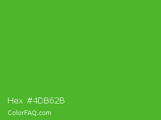 Hex #4db62b Color is a normal green color and the nearest color is Kelly Green #4cbb17. Hex code #4db62b and RGB value is rgb(77,182,43). In RGB color space, this color is composed of 30% red, 71% green, 17% blue, In CMYK color space, this color is composed of 58% cyan, 0% magenta, 76% yellow , 29% black , In HSL color space, this color has a hue angle of 105° , 62% saturation and 44% lightness.