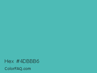 Hex #4dbbb6 Color is a normal cyan color and the nearest color is Fountain Blue #56b4be. Hex code #4dbbb6 and RGB value is rgb(77,187,182). In RGB color space, this color is composed of 30% red, 73% green, 71% blue, In CMYK color space, this color is composed of 59% cyan, 0% magenta, 3% yellow , 27% black , In HSL color space, this color has a hue angle of 177° , 45% saturation and 52% lightness.