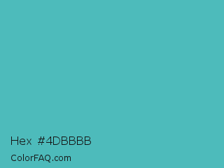 Hex #4dbbbb Color is a normal cyan color and the nearest color is Fountain Blue #56b4be. Hex code #4dbbbb and RGB value is rgb(77,187,187). In RGB color space, this color is composed of 30% red, 73% green, 73% blue, In CMYK color space, this color is composed of 59% cyan, 0% magenta, 0% yellow , 27% black , In HSL color space, this color has a hue angle of 180° , 45% saturation and 52% lightness.
