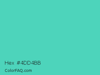 Hex #4dd4bb Color is a normal cyan color and the nearest color is Medium Turquoise #48d1cc. Hex code #4dd4bb and RGB value is rgb(77,212,187). In RGB color space, this color is composed of 30% red, 83% green, 73% blue, In CMYK color space, this color is composed of 64% cyan, 0% magenta, 12% yellow , 17% black , In HSL color space, this color has a hue angle of 169° , 61% saturation and 57% lightness.
