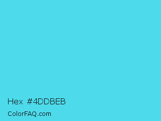 Hex #4ddbeb Color is a light cyan color and the nearest color is Turquoise #40e0d0. Hex code #4ddbeb and RGB value is rgb(77,219,235). In RGB color space, this color is composed of 30% red, 86% green, 92% blue, In CMYK color space, this color is composed of 67% cyan, 7% magenta, 0% yellow , 8% black , In HSL color space, this color has a hue angle of 186° , 80% saturation and 61% lightness.