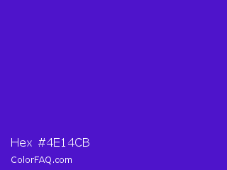 Hex #4e14cb Color is a normal indigo color and the nearest color is Interdimensional Blue #360ccc. Hex code #4e14cb and RGB value is rgb(78,20,203). In RGB color space, this color is composed of 31% red, 8% green, 80% blue, In CMYK color space, this color is composed of 62% cyan, 90% magenta, 0% yellow , 20% black , In HSL color space, this color has a hue angle of 259° , 82% saturation and 44% lightness.