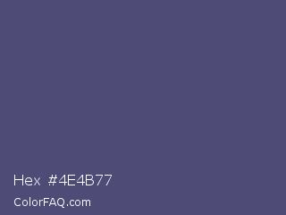 Hex #4e4b77 Color is a normal indigo color and the nearest color is Purple Navy #4e5180. Hex code #4e4b77 and RGB value is rgb(78,75,119). In RGB color space, this color is composed of 31% red, 29% green, 47% blue, In CMYK color space, this color is composed of 34% cyan, 37% magenta, 0% yellow , 53% black , In HSL color space, this color has a hue angle of 244° , 23% saturation and 38% lightness.
