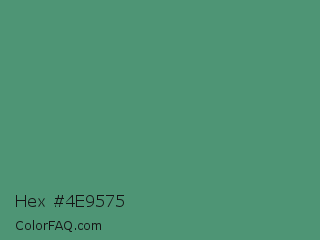 Hex #4e9575 Color is a normal green color and the nearest color is Wintergreen Dream #56887d. Hex code #4e9575 and RGB value is rgb(78,149,117). In RGB color space, this color is composed of 31% red, 58% green, 46% blue, In CMYK color space, this color is composed of 48% cyan, 0% magenta, 21% yellow , 42% black , In HSL color space, this color has a hue angle of 153° , 31% saturation and 45% lightness.