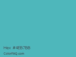 Hex #4eb7bb Color is a normal cyan color and the nearest color is Fountain Blue #56b4be. Hex code #4eb7bb and RGB value is rgb(78,183,187). In RGB color space, this color is composed of 31% red, 72% green, 73% blue, In CMYK color space, this color is composed of 58% cyan, 2% magenta, 0% yellow , 27% black , In HSL color space, this color has a hue angle of 182° , 44% saturation and 52% lightness.