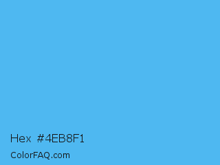 Hex #4eb8f1 Color is a light blue color and the nearest color is Picton Blue #45b1e8. Hex code #4eb8f1 and RGB value is rgb(78,184,241). In RGB color space, this color is composed of 31% red, 72% green, 95% blue, In CMYK color space, this color is composed of 68% cyan, 24% magenta, 0% yellow , 5% black , In HSL color space, this color has a hue angle of 201° , 85% saturation and 63% lightness.