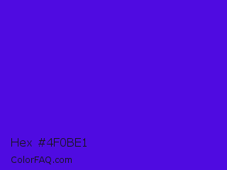 Hex #4f0be1 Color is a normal indigo color and the nearest color is Han Purple #5218fa. Hex code #4f0be1 and RGB value is rgb(79,11,225). In RGB color space, this color is composed of 31% red, 4% green, 88% blue, In CMYK color space, this color is composed of 65% cyan, 95% magenta, 0% yellow , 12% black , In HSL color space, this color has a hue angle of 259° , 91% saturation and 46% lightness.
