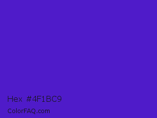 Hex #4f1bc9 Color is a normal indigo color and the nearest color is Interdimensional Blue #360ccc. Hex code #4f1bc9 and RGB value is rgb(79,27,201). In RGB color space, this color is composed of 31% red, 11% green, 79% blue, In CMYK color space, this color is composed of 61% cyan, 87% magenta, 0% yellow , 21% black , In HSL color space, this color has a hue angle of 258° , 76% saturation and 45% lightness.
