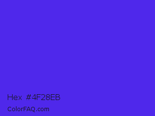 Hex #4f28eb Color is a normal indigo color and the nearest color is Han Purple #5218fa. Hex code #4f28eb and RGB value is rgb(79,40,235). In RGB color space, this color is composed of 31% red, 16% green, 92% blue, In CMYK color space, this color is composed of 66% cyan, 83% magenta, 0% yellow , 8% black , In HSL color space, this color has a hue angle of 252° , 83% saturation and 54% lightness.