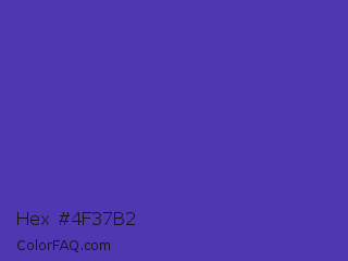 Hex #4f37b2 Color is a normal indigo color and the nearest color is Ocean Blue #4f42b5. Hex code #4f37b2 and RGB value is rgb(79,55,178). In RGB color space, this color is composed of 31% red, 22% green, 70% blue, In CMYK color space, this color is composed of 56% cyan, 69% magenta, 0% yellow , 30% black , In HSL color space, this color has a hue angle of 252° , 53% saturation and 46% lightness.