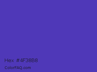 Hex #4f38b8 Color is a normal indigo color and the nearest color is Ocean Blue #4f42b5. Hex code #4f38b8 and RGB value is rgb(79,56,184). In RGB color space, this color is composed of 31% red, 22% green, 72% blue, In CMYK color space, this color is composed of 57% cyan, 70% magenta, 0% yellow , 28% black , In HSL color space, this color has a hue angle of 251° , 53% saturation and 47% lightness.