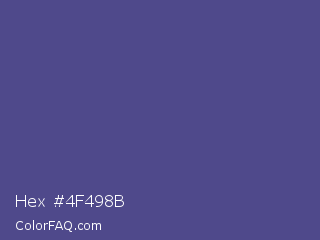 Hex #4f498b Color is a normal indigo color and the nearest color is Victoria #534491. Hex code #4f498b and RGB value is rgb(79,73,139). In RGB color space, this color is composed of 31% red, 29% green, 55% blue, In CMYK color space, this color is composed of 43% cyan, 47% magenta, 0% yellow , 45% black , In HSL color space, this color has a hue angle of 245° , 31% saturation and 42% lightness.